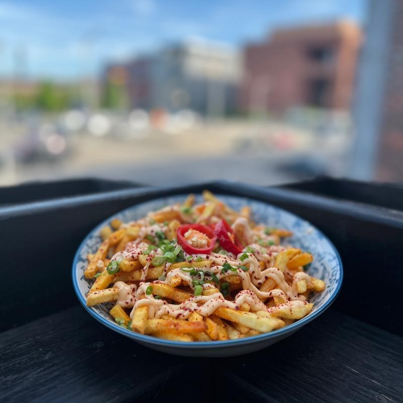 portuguese bolo roll, steak, chili crisp mayo, cooper american cheese, chimichurri, fries, spring mix