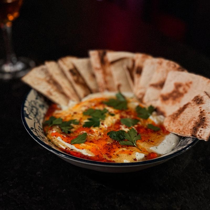 whipped feta & cream cheese, mint, lemon, hot honey drizzle, pita chips