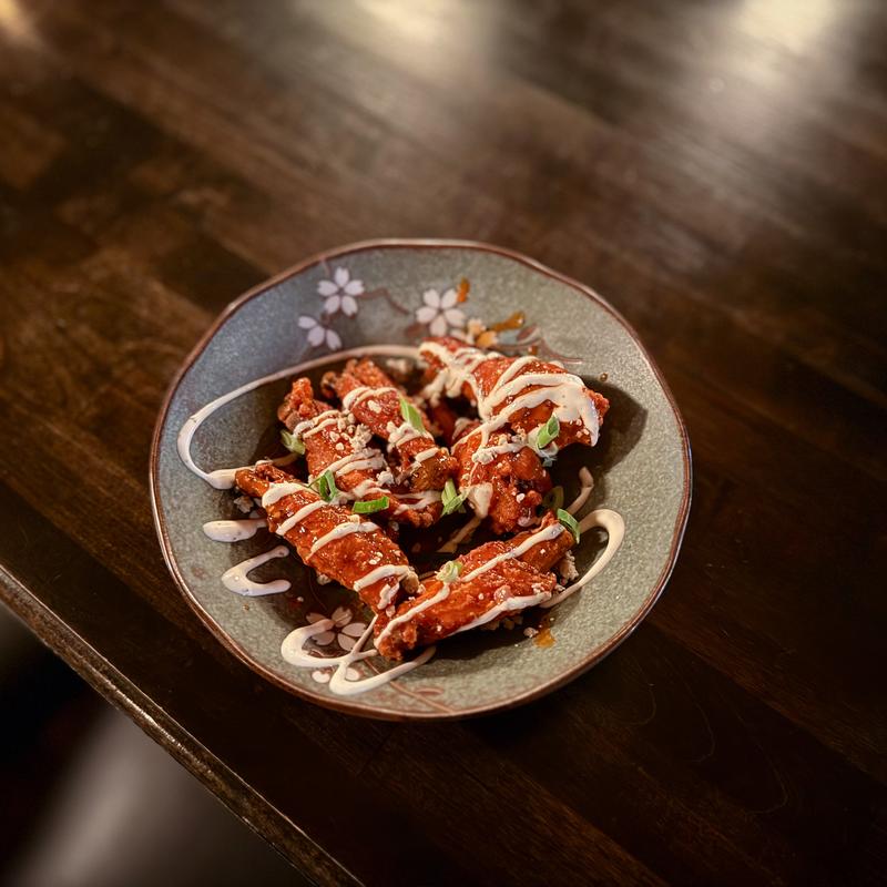 sweet chili sriracha, jalapeños, banana peppers, lemon, sesame seeds, scallions